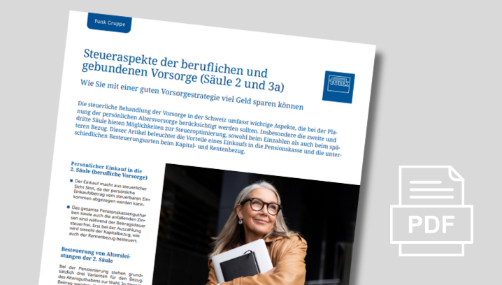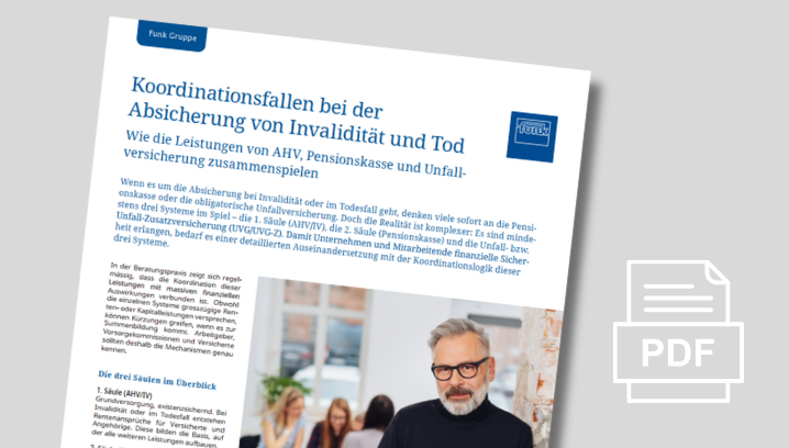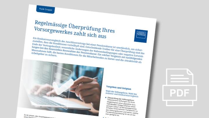 Die Artikel von «Fokus Vorsorge» wenden sich gezielt an Personen, welche in Unternehmen für die Vorsorgelösung zuständig sind, sei es als Mitglied einer Vorsorgekommission, Personalverantwortlicher oder Patron. Lesen Sie unsere spannenden, aktuellen und unterstützenden Beiträge zu Vorsorgethemen.