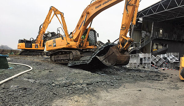 Neben eindrücklichen Erlebnissen bleibt für alle Beteiligten eine Reihe von Erkenntnissen. Dazu einige Beispiele: Kunststoffkisten brennen unerwartet schnell und sie schmelzen zu einer lavaähnlichen Masse, die so heiss wird, dass sie sich mit dem Teerbelag vermischt. Die so entstehende, 30 bis 70 Zentimeter dicke und feste Schicht zwischen dem schwarz verbrannten Kunststoff an der Oberfläche und dem Teergemisch auf dem Boden ist ein Klumpen aus buntem Kunststoff. Die Aufräumarbeiten müssen sehr schnell erfolgen, denn die 1'900 Tonnen Obst und Gemüse bilden einen Saft, der die Bodenplatte zerfrisst. Und ohne solide Bodenplatte dauert ein Wiederaufbau deutlich länger.