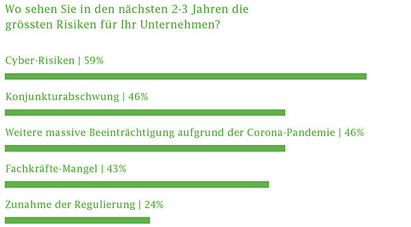 Die Funk-Kunden sehen Cyber-Risiken, den Corona-bedingten Konjunkturmangel als Hauptrisiken der nächsten Jahre. Von den angebotenen Zusatzdienstleistungen wurden das Cyber-Security-Training und das Risikomanagement mit deutlichem Abstand als besonders interessant bewertet.