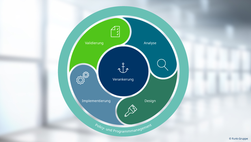 Funk unterstützt Unternehmen je nach Bedarf über sämtliche BCM-Projektphasen hinweg und ermöglicht die entsprechende Zertifizierung nach einschlägigen Normen wie zum Beispiel ISO 22301. Dafür muss das BCM als rollierender Lifecycle aufgebaut sein. Denn nur durch die stetige Wiederholung der einzelnen Phasen kann ein Unternehmen kontinuierlich sein BCM verbessern und das eigene Immunsystem dauerhaft stärken.